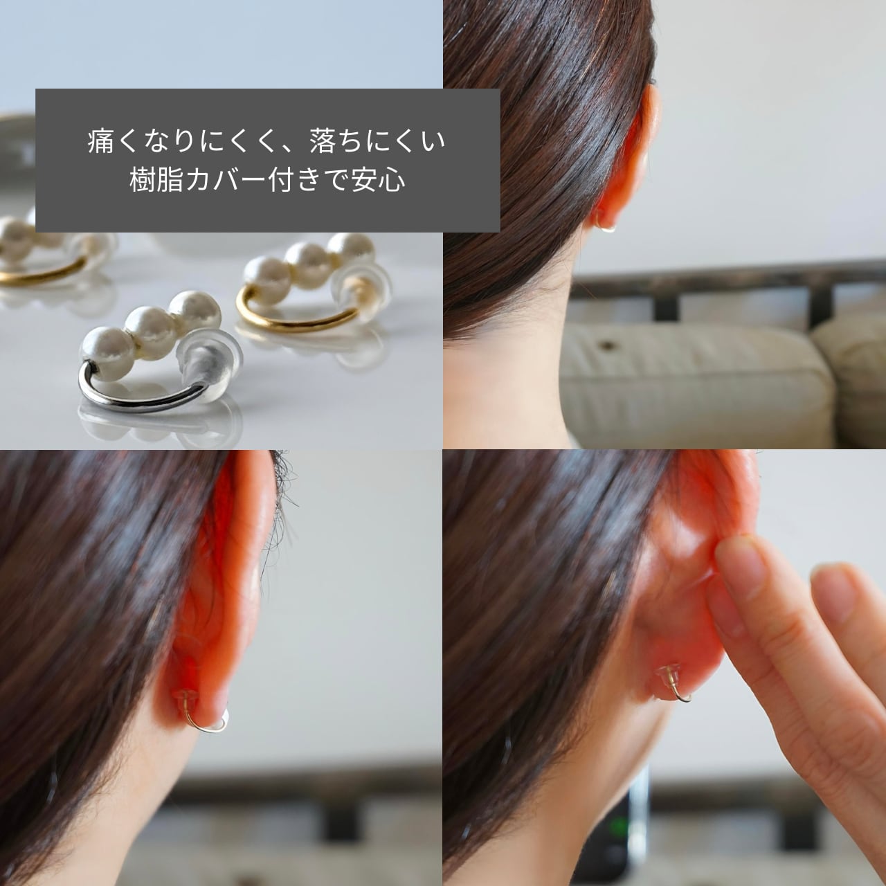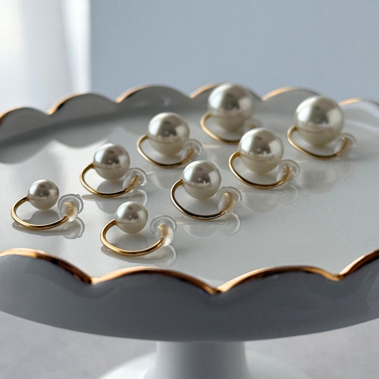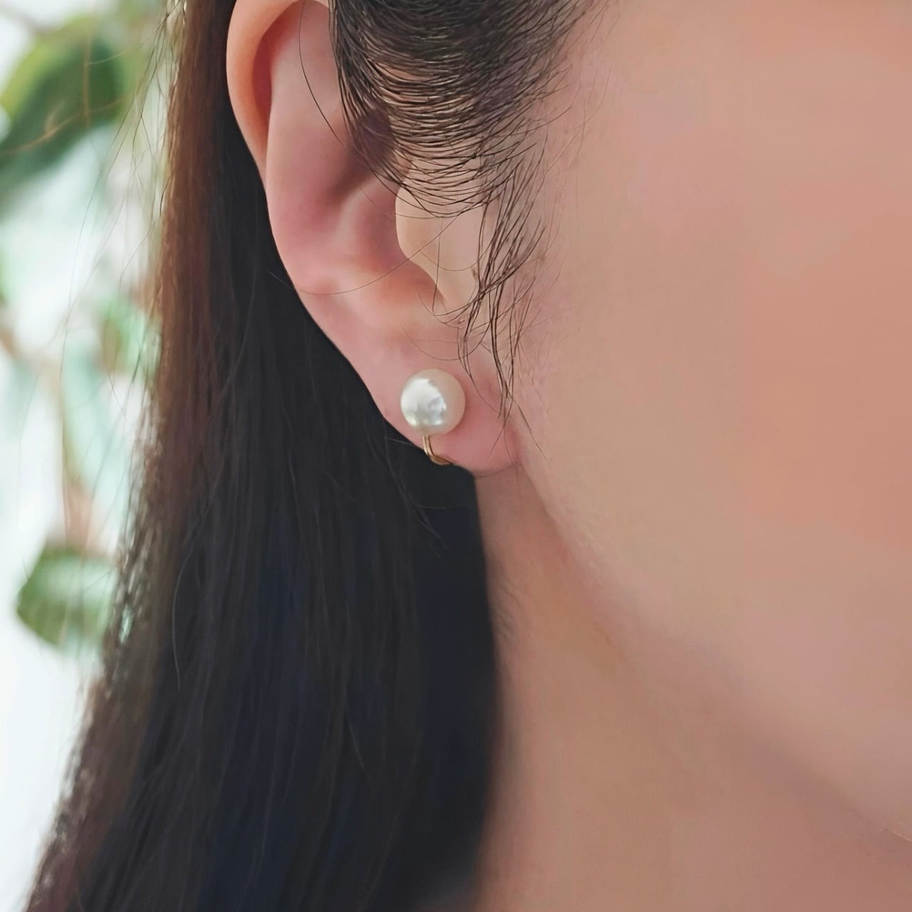 痛くない一粒パールのノンホールピアス(ホワイト)|揺れない上品イヤリング|結婚式・卒業式・入学式に