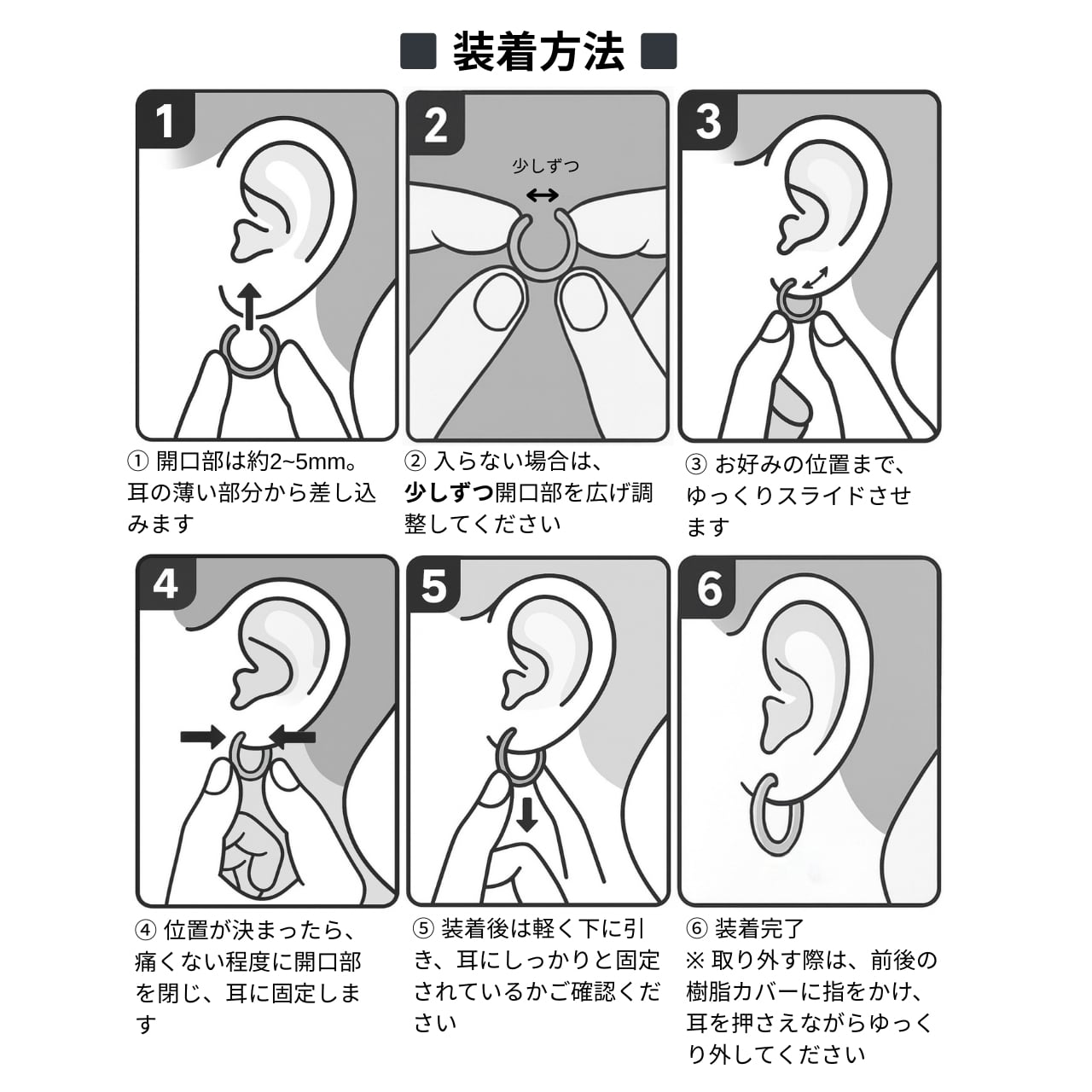 ※装着後の頻繁なスライドは耳への摩擦(皮むけ)の原因になります。