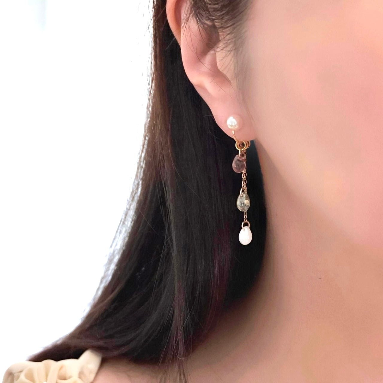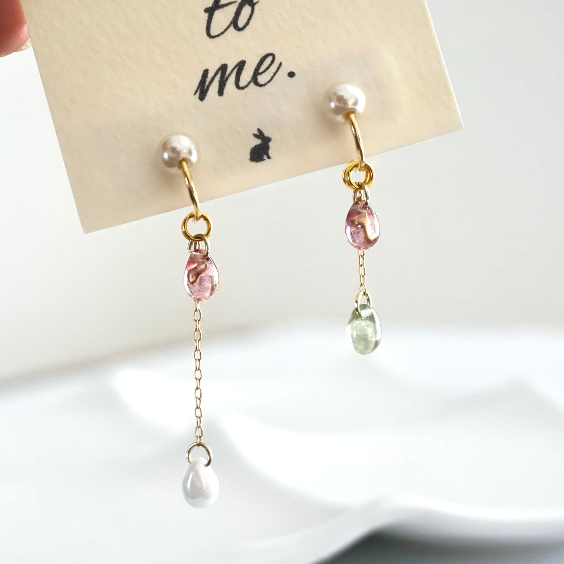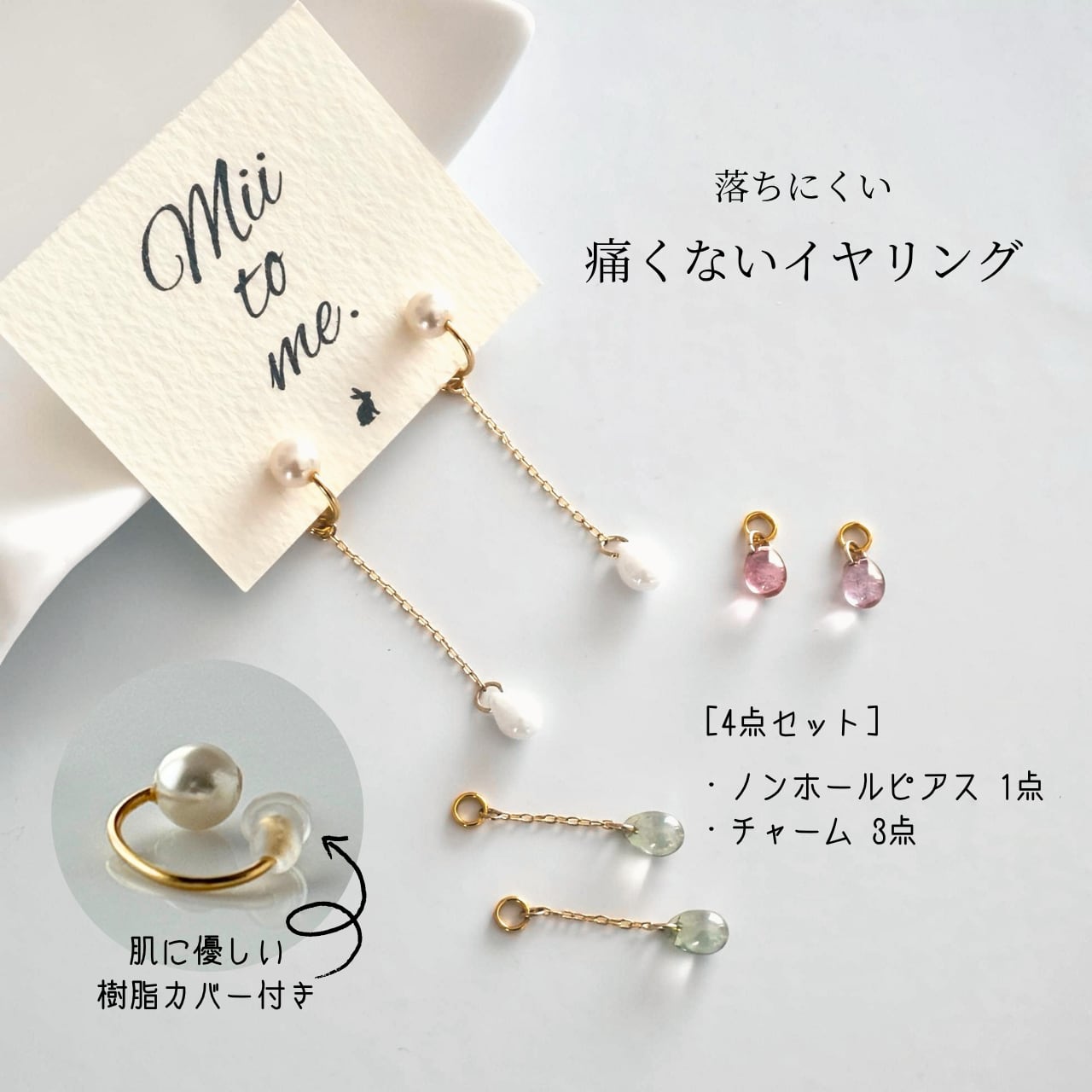 【アレンジ4点セット】一粒パール(6mm)+チェコビーズチャーム3点|痛くないイヤリング ノンホールピアス